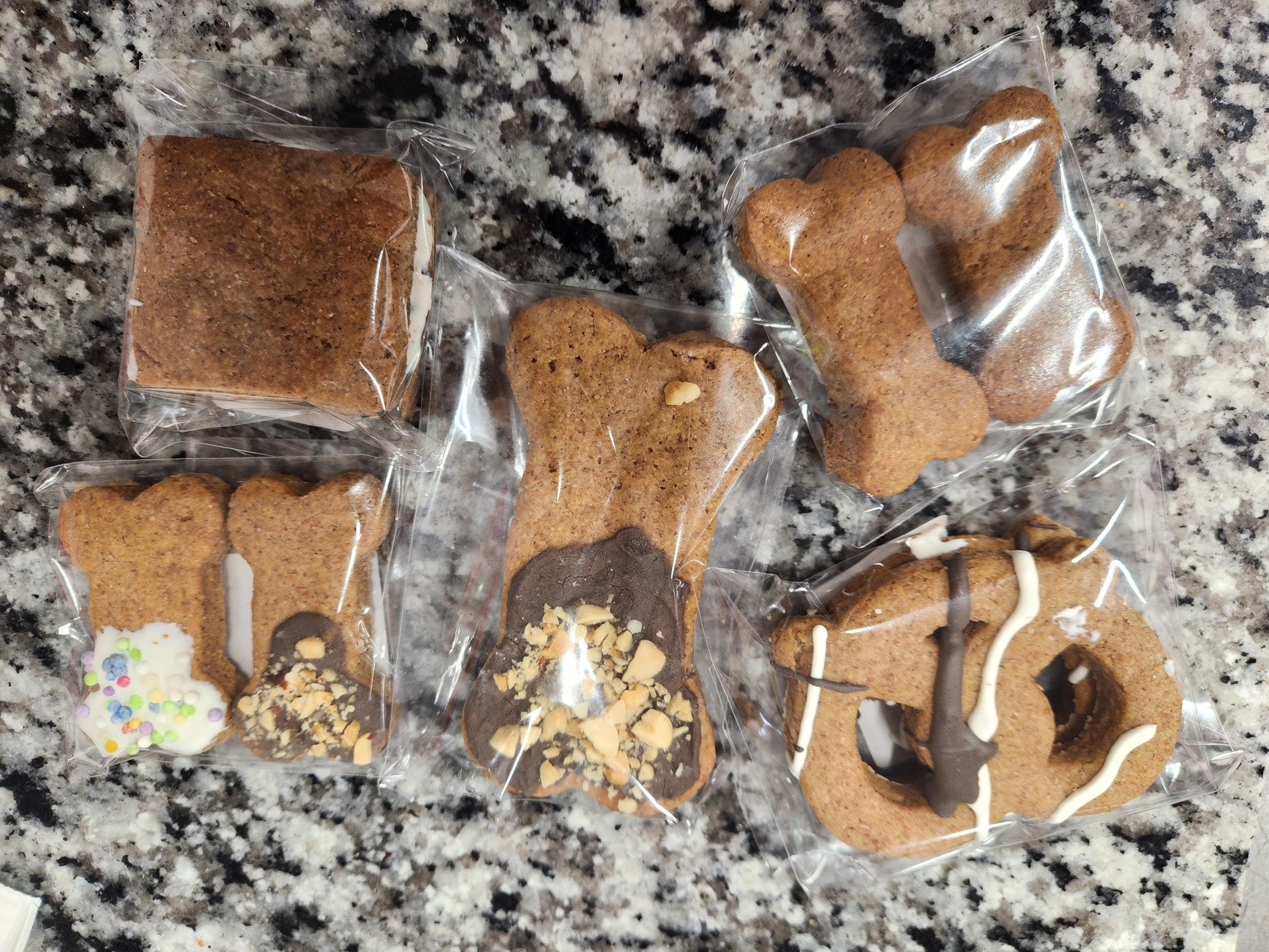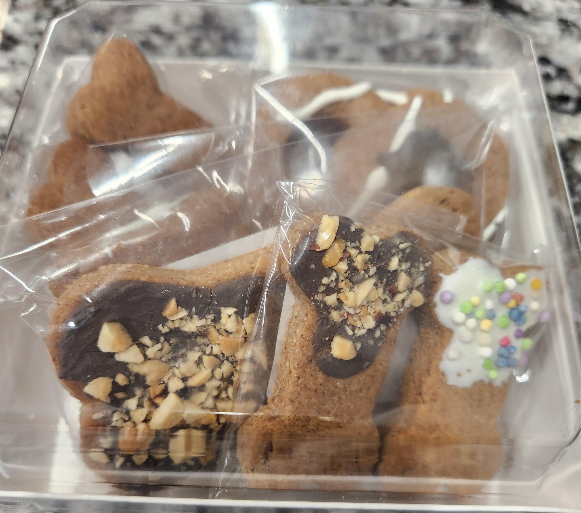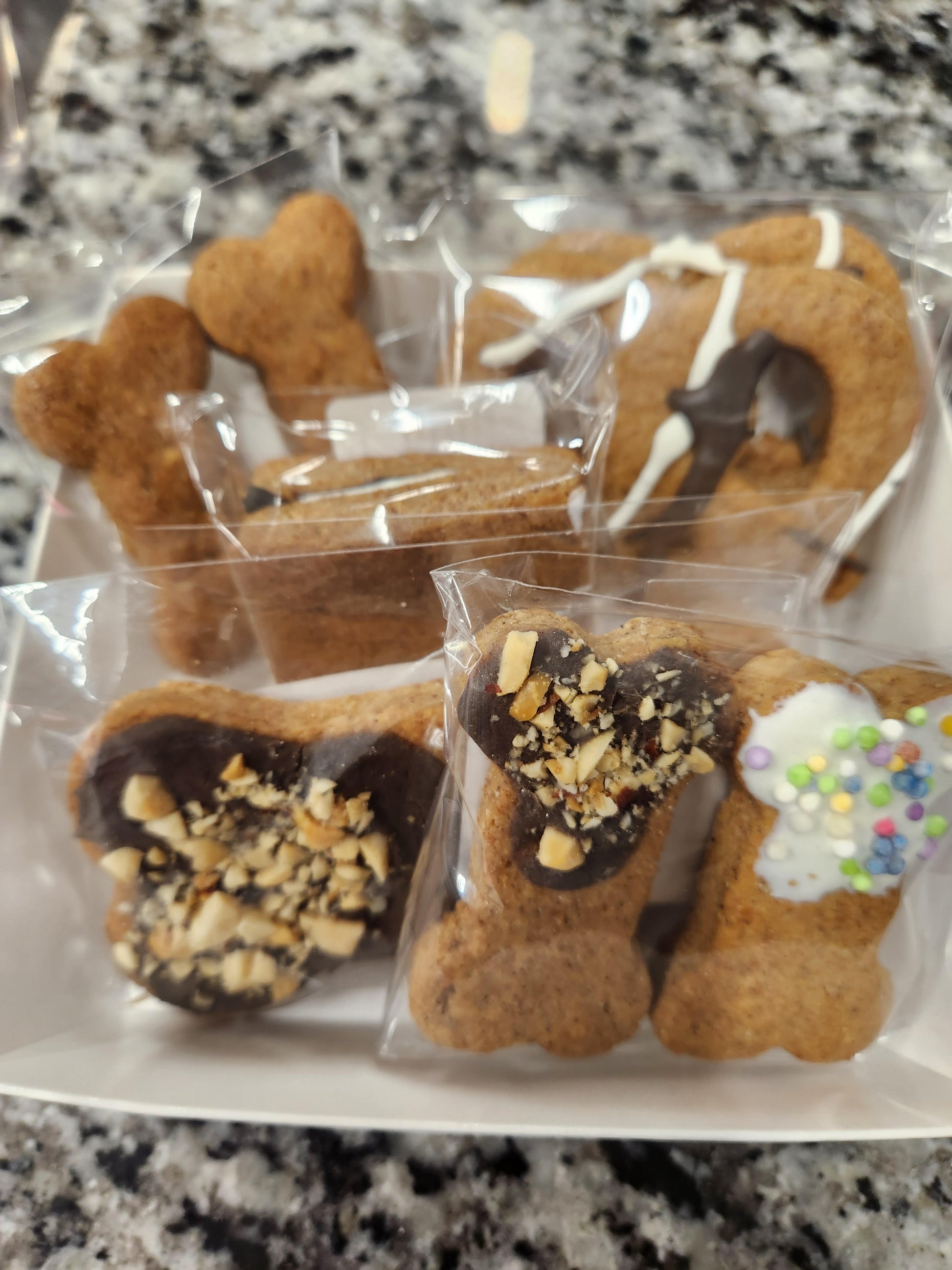 Indulge your furry friend with our Barkuterie Box, featuring a unique assortment of human-grade ingredients. This box is the perfect gift or sample pack, complete with a Large Fido's Frosted Cookie, S'more Hound, 2 Pooch Pretzels, 2-medium Fido's Frosted, and two delicious Canine Cookies. Treat your pup to a gourmet experience they'll never forget - order your Barkuterie Box today!