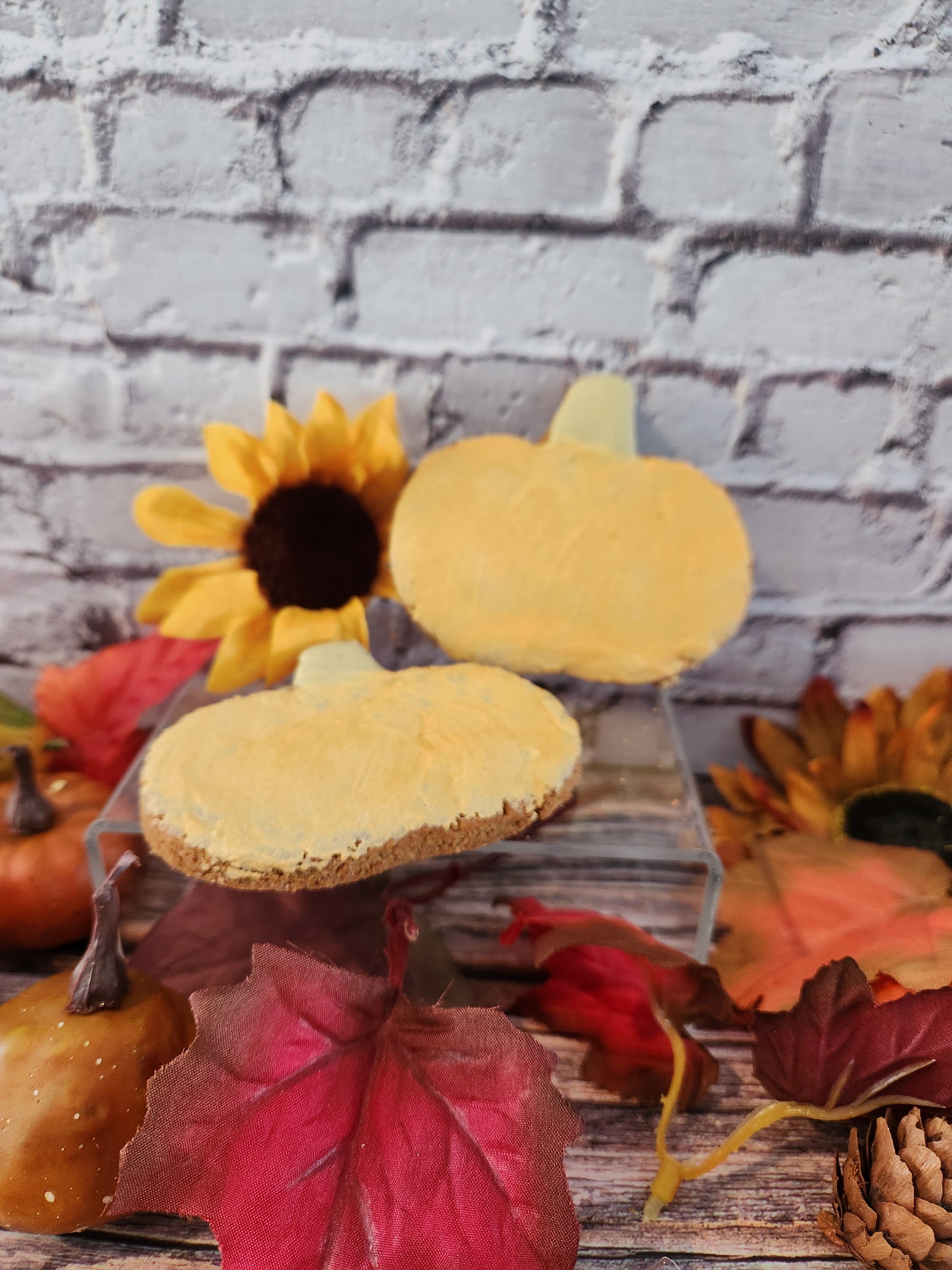 Indulge your furry friend with our pumpkin-shaped dog treat! This peanut butter cookie in a festive pumpkin shape is the perfect special treat for Halloween. Great for any size dog, it's a tasty and fun way to celebrate the season.